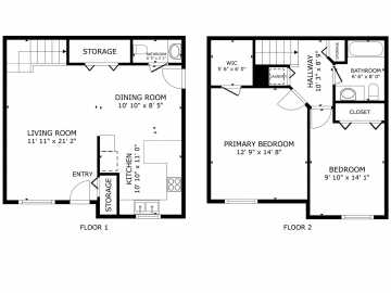1350 Sq. Ft. • 2 Beds • 1 Full / 1 Half Baths